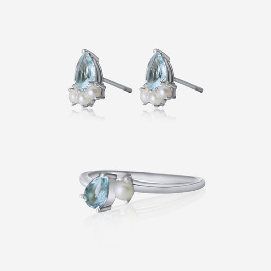 Ocean Enchantment & Harmony Aquamarine w/ Akoya Pearl Earring & Ring